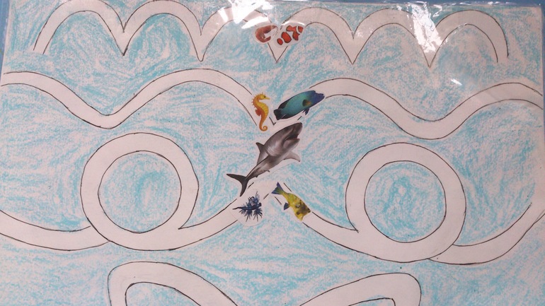 Честно говоря, просто лень писать про них отдельный пост, поэтому они тоже здесь. Сейчас на ББ очень много обсуждается развитие правого полушария, но почему-то я ни разу не слышала про такие прописи. Синхронное выполнение руками одинаковых движений очень гармонизирует работу мозга и не дает левому полушарию "задушить" правое. Именно поэтому так полезны танцы, фортепиано и проч. Я сделала совсем простые картинки формата А3 и заламинировала. Мне было в тот момент проще их нарисовать от руки. Если сделаю электронный вариант, выложу. В одном задании мы рисовали паутинку и ловили насекомых, в другом - спасали рыбок от акулы, проводя им дорожку. Задание с рыбками я сама могу выполнить двумя руками сразу с трудом :)))