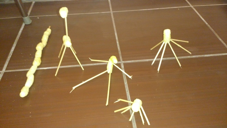 5. Начитавшись прекрасных отзывов о кукурукторе, мне тоже захотелось в него поиграть. Но ждать, когда его наконец привезут их интернет магазина - не наш метод, поэтому муж при походе в магазин просто принес мне кукурузные палочки. Так вот, обычные палочки крепятся друг к другу крайне плохо, а если их посильнее намочить, то склеиваются, но начинают раскисать. В итоге мы поиграли немного, делая разные фигурки из кукурузных палочек и палочек для шашлычка, а потом бросили все это дело... Теперь вот сижу и думаю, кукуруктор такой же или все же более приспособленный для стройки.