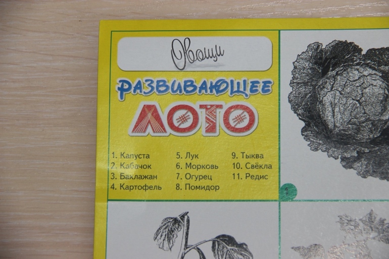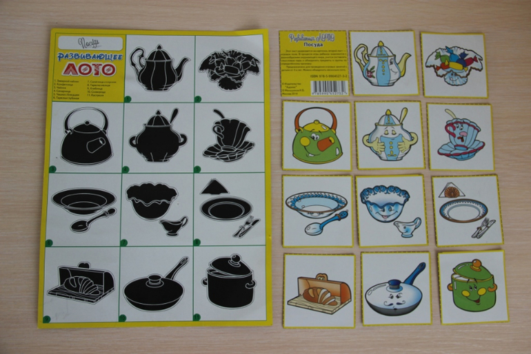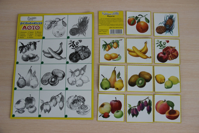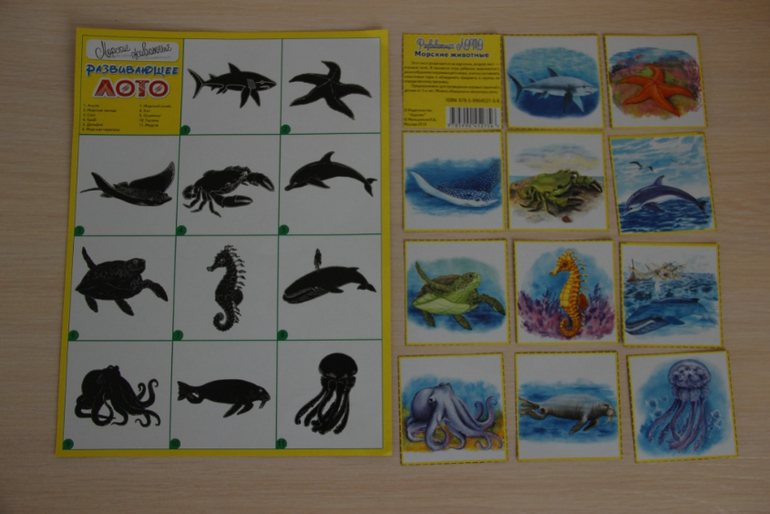 В серии "Развивающее ЛОТО" 12 лото, у нас 6 шт. (Овощи, Фрукты, Посуда, У кого какой малыш?, Экзотические животные, Морские животные).