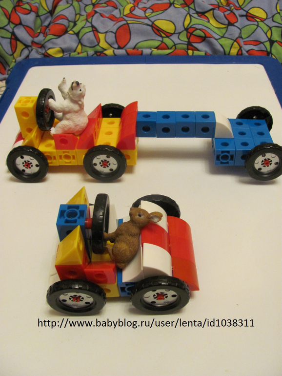 Для меня самое главное - ребенок уже самостоятельно соединяет детали (нужно приложить небольшое усилие, в 2 года не мог еще) и фантазирует.