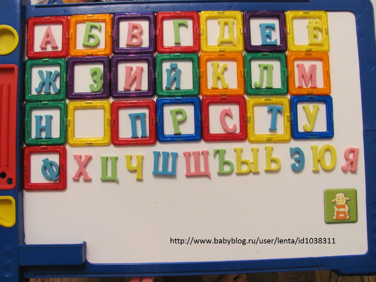 Сначала ребенок подходил к плакату, нажимал на кнопки и повторял слоги/буквы. Теперь умеет составлять свое имя, мама, баба, и еще несколько простых слов. Специально не покупала звуковой плакат "Азбука" с картинками т.к он быстро теряет свою актуальность.![]()