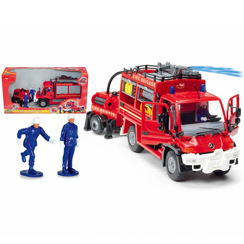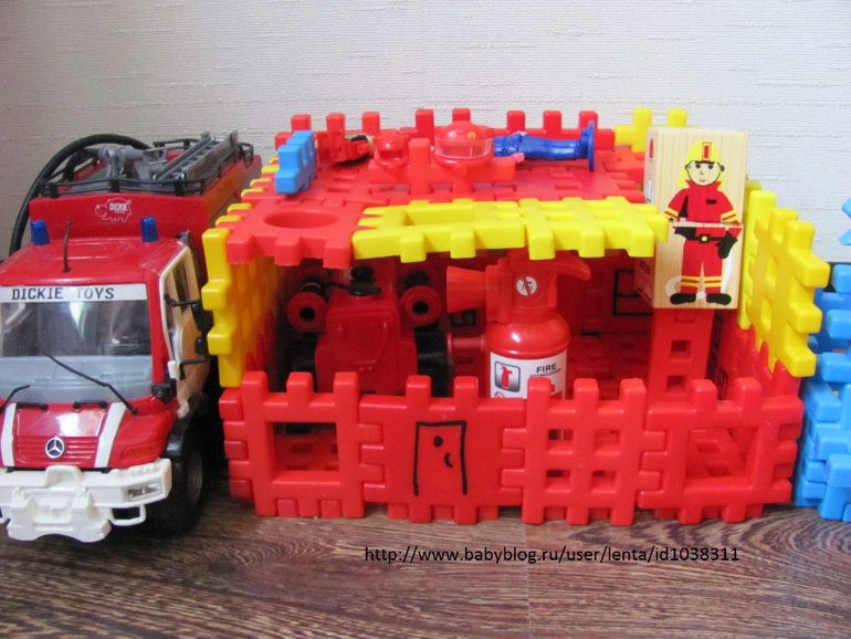 В комплекте - водяная помпа с откидными опорами (в которую заливается вода) подключается к шлангу и машинаразбрызгивает водутушит пожар из брандспойта! Помпа подсоединяется к машине. Три фигурки пожарных, которыми ребенок не играет))) Открываются двери и ящики на кузове, в которых имеются дополнительные инструменты - различные огнетушители, лопата, пила, насос (желтая штука) и др. Резиновые колеса-для меня это преимущество, т.к у нас ламинат. Без света и звука. Цена покупки 500р на распродаже.![]()