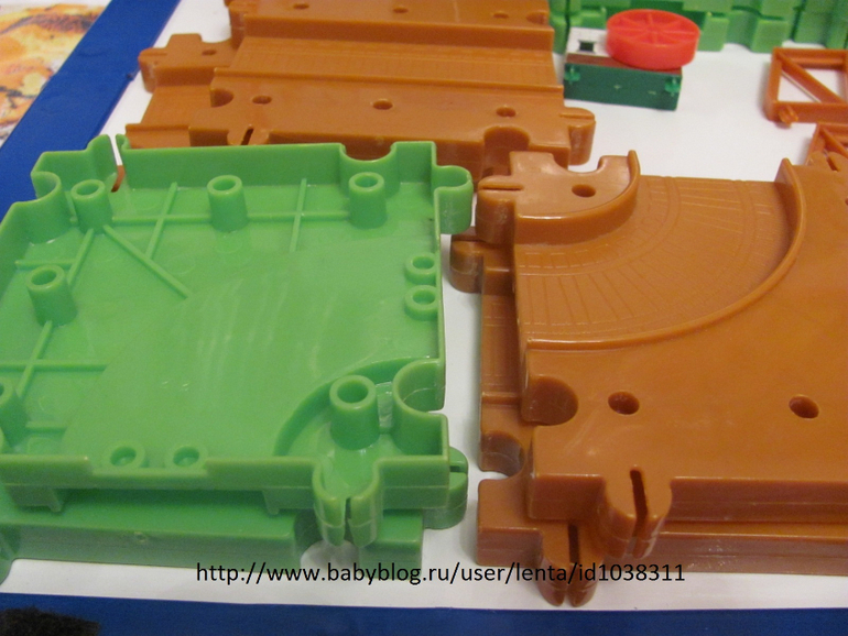 1. Конструктор, которым мы начали пользоваться с года и по сей день пользуется спросом - от фирмы "Полесье". Первый был "Фермер". Начинали с самого простого - дорожки,домики, собирали животных... Его характеристики - универсальный, долговечный, качественная пластмасса, натуральные цвета.