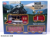 У нас в набор входит - паровоз, вагон с углем, пассажирский вагон,рельсы.