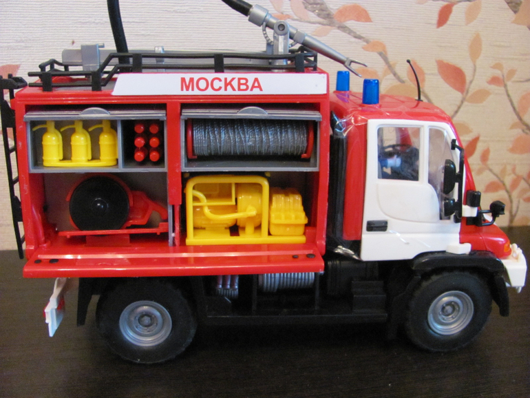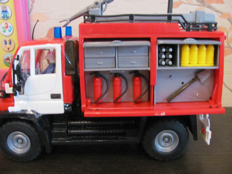Из недостатков - брандспойт не снимается, и лестница вынимается и самостоятельно ставится, а не выдвигается с машины.