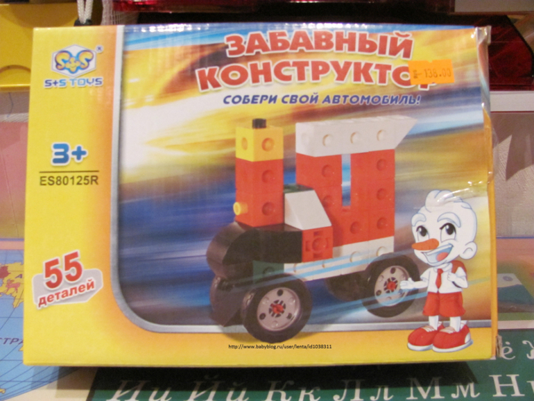 Невзрачная упаковка - но внутри конструктор отличного качества, приятной расцветки и главное КОЛЕСА не отваливаются (как в игольчатом конструкторе). Из недостатков - квадратные блоки только трех цветов, ну и мало деталей))
