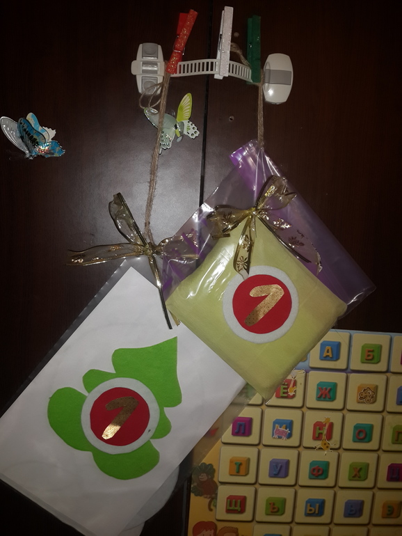 А у нас сегодня начался Первый день нашего адвент-календаря " Учим алфавит" тут я о нем писала (пост пока закончен буквой Т все ост. на черновике). Расскажу как прошло знакомство: во-первых: я все таки зная свою малышку-любопышку, приняла решение сразу не вывешивать весь календарь с подарками, т.к слез и требованья отдать все и сразу было бы не избежать. Дочу я сперва подготовила, рассказав о том, что сегодня первый день зимы, что скоро Новый год, вспоминали, что делали в прошлом году на НГ, обсудили что будем делать в эти праздники. Потом, пока Лиза чистила зубки, я быстренько повесила конверты. Остановилась на таком варианте