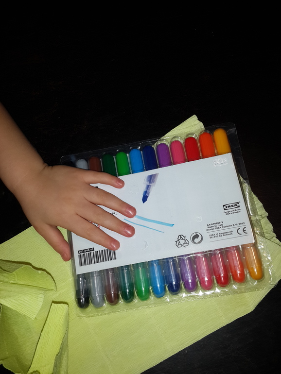 ( Кстати,с планом подарков не все гладко вышло, хотела все заранее упаковать, но не успела и что то не смогла купить, теперь просто буду каждый вечер подготавливать ) и апельсин таки был раскрашен новыми фломастерами.
