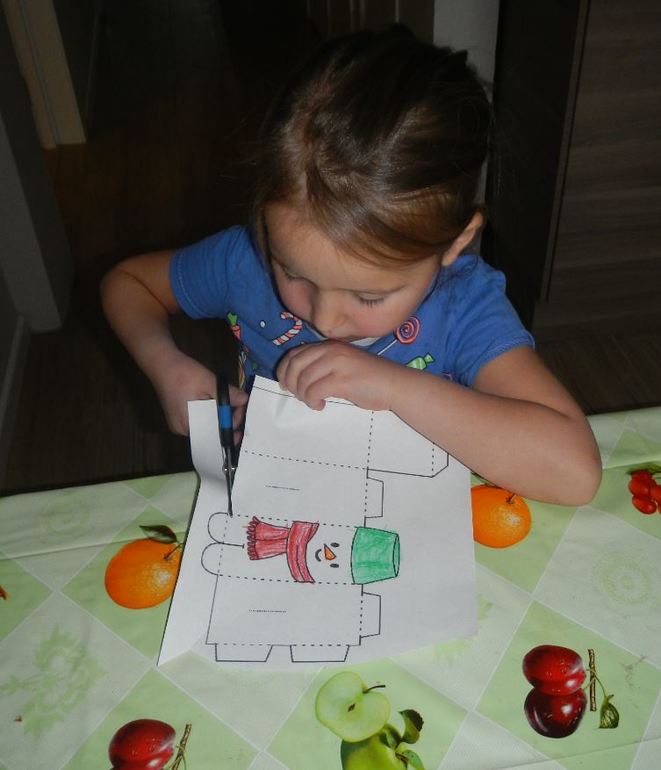 Сыну снеговика вырезала я сама. А дочка сама все вырезала.