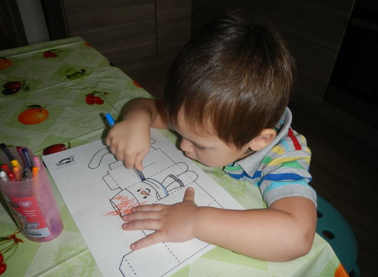 Сначала мы их раскрасили. Сынишка меня удивил, раскрашивал на мой взгляд очень аккуратно.