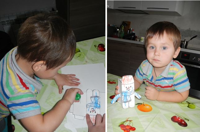 А мы сегодня домики клеили, позже тоже покажу. Ваших снеговиков беру на заметку, дай, пожалуйста, ссылку где скачать. У меня ребенок отказывается выходить на улицу, у вас такого не было?
