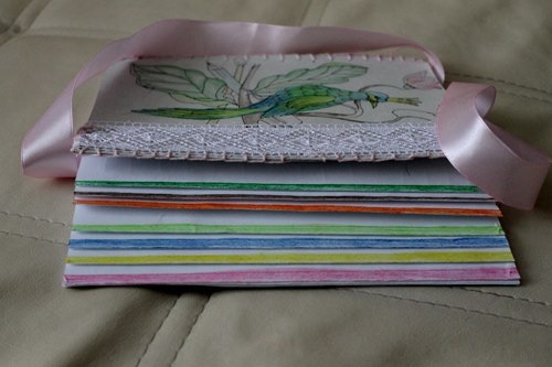 Дык свернула альбом для рисования обложку пополам и сшила.А листы первую часть загнула вовнутрь лесенкой,а 2 часть обрезала для удобства.Все;))))))