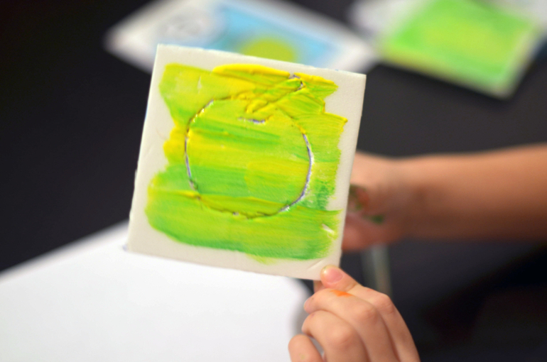 выдавить на ней рисунок(с этим возникли затруднения, карандашом не вышло, рисовали ручкой и несколько раз продавливали контур)