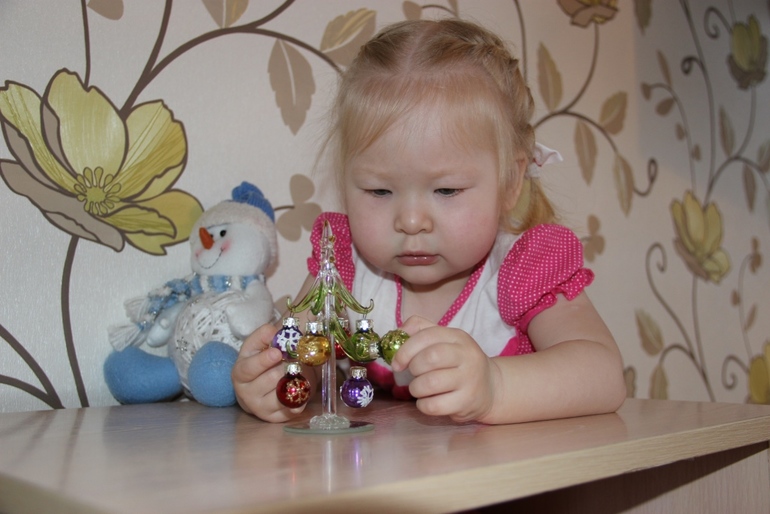Новогодний калейдоскоп 2015Новый год уже совсем рядом и мы по-потихонечку начинаем к нему готовится. Украшение большой ёлки еще впереди, пока тренируемся на маленькой. Эту крошку я купила с большим удовольствием специально для Марианны. Высота ёлочки 10 см, 8 веточек крючков, 8 шаров. Шарик удобно держать в ручке. Конечно только под наблюдением взрослого, елочка и шары стеклянные.