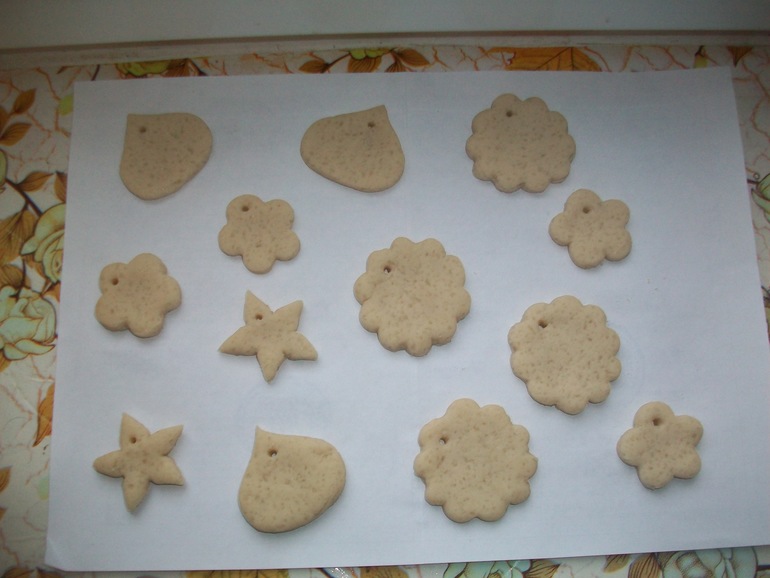 И оставили сушиться на несколько дней. Предварительно я сделала дырочки, чтобы их можно было подвешивать за ниточку на ёлку