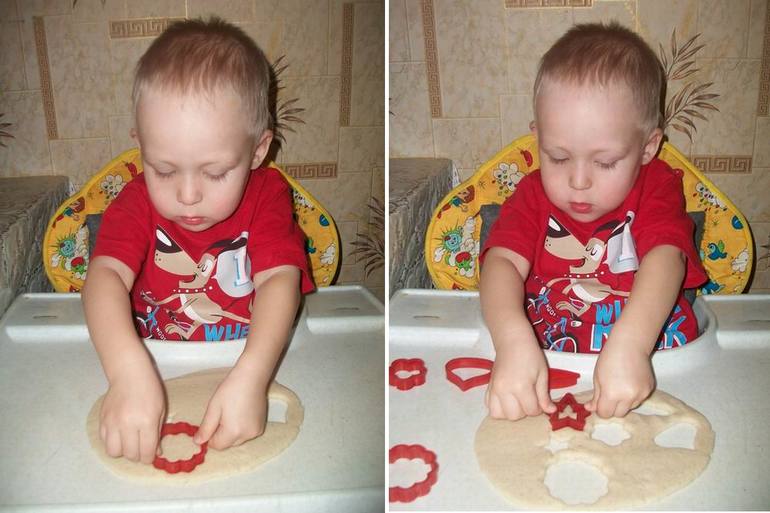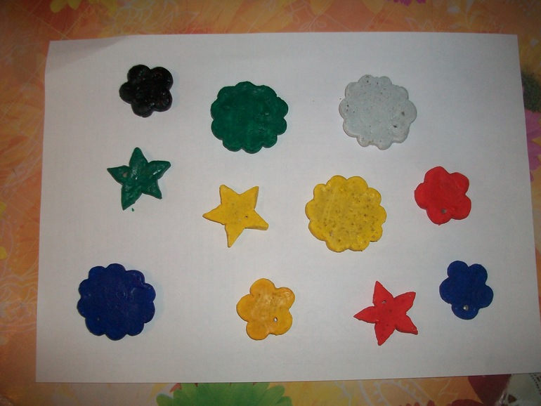Из домашнего пластилина (я заметила, что он твердеет на воздухе) решили мы сделать игрушки на нашу ёлку. Сначала вырезали фигурки: звездочки, цветочки и др.