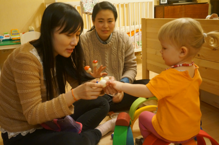 Все определил случай, ведь стоит только чего захотеть....Я столкнулась с двумя молодыми китаянками в супермаркете у прилавка с печеньем, я уронила пачку, а они подняли....Судьба...Разговорились....И вот 2 милые девочки уже приходят к нам домой и 2 раза в неделю играют с Машей на китайском. Я в восторге! Ребенок их обожает, все понимает, удивительно,но в таком возрасте нет барьеров и комплексом того, что ты можешь не понять....она просто играет с ними, веселиться, все показывает и учит язык, так как общение происходит только на китайском, а я лишь иногда что-то вставляю по-русски!