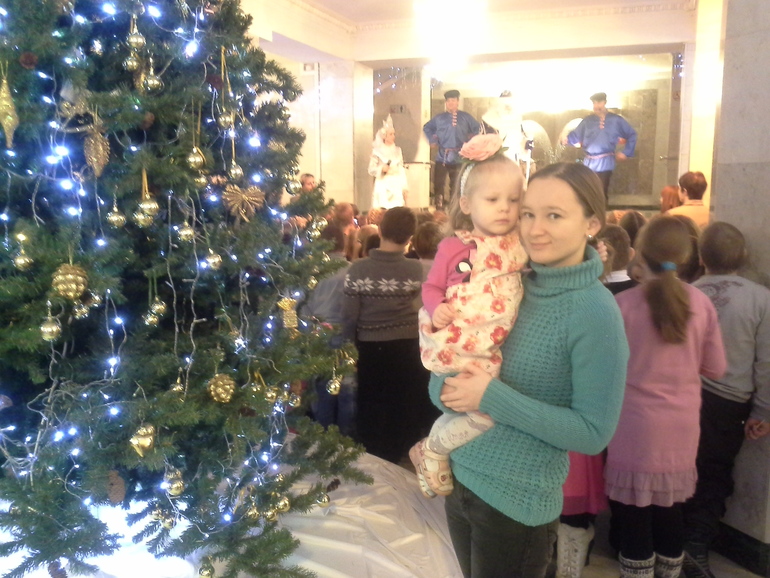 Сначала было 20-минутное представление с дедом Морозом и Снегурочкой, с песнями и хороводами