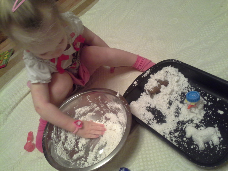 Из зимних игр наиболее увлекла Ульянку возня с искусственным снегом из пены для бритья и соды