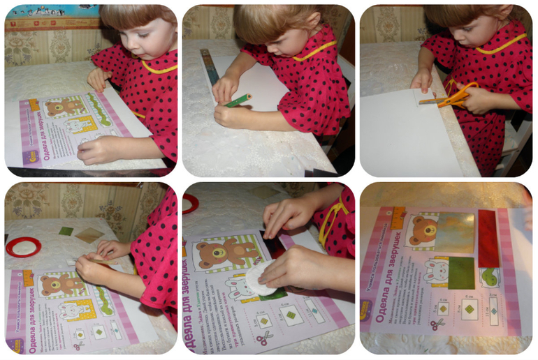 9) немного творчества. Делаем одеялки для животных, размеры даны, Полина отмеряет чертит и верезает
