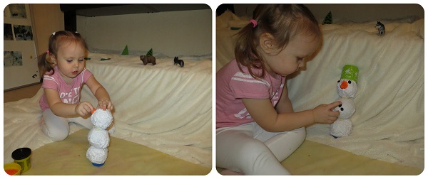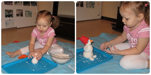2. Слепили снеговика. Я использовала давно проверенный рецепт крахмал+вода.