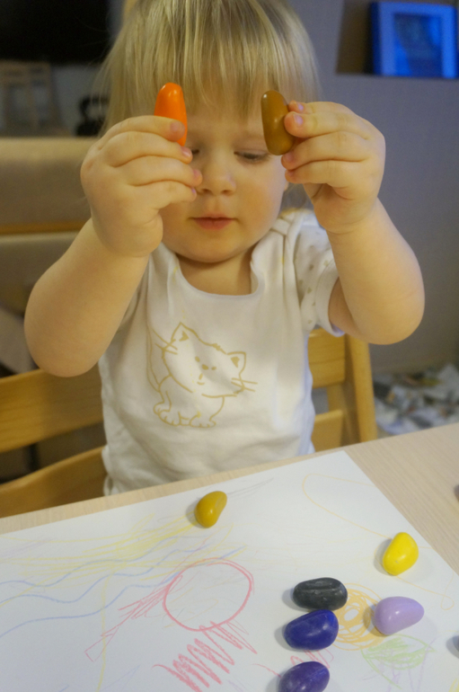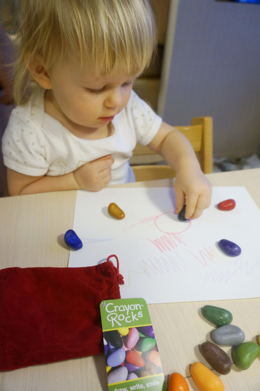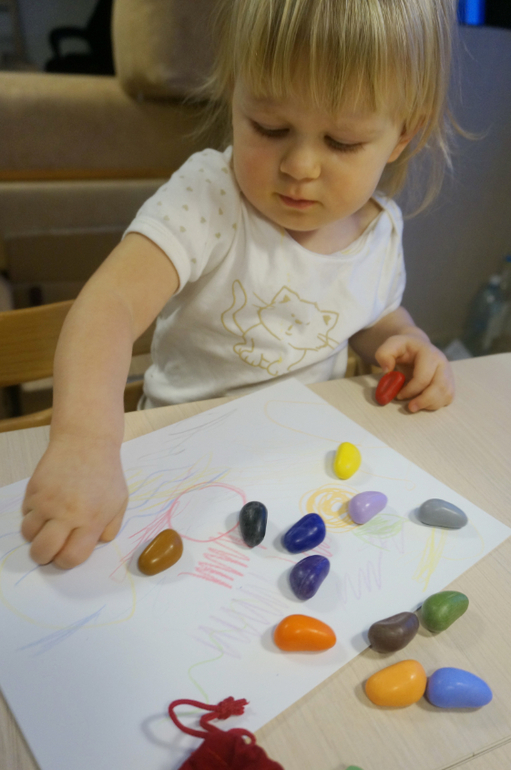 Все о развивающих игрушках, пособиях и книгах (обзоры, рекомендации,хвастики, ссылки)Когда Маша была маленькой, я купила ей легендарные американские мелки-камешки , созданные для развития мелкой моторики и правильного держания карандаша в руке. Они как-то затерялись в шкафу, ожидая своего часа, а тут при переезде нашлись. Дочь рисует с удовольствием, но мне кажется цвета довольно бледные, даже при сильном нажатии. В любом случае, это хорошая возможность альтернативного рисования и прививания любви к творчеству. 16 цветов можно купить в интернет-магазинах примерно за 450-500 рублей.