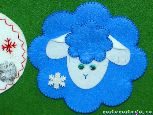 Овечка - символ 2015 года на липучке, её можно использовать как пальчиковую игрушку. Интересно, в зависимости от положения глаз-зрачков она передаёт настроение.