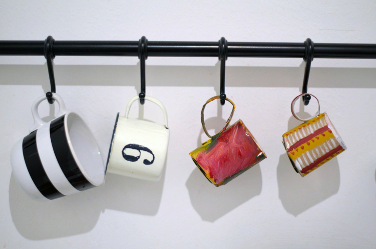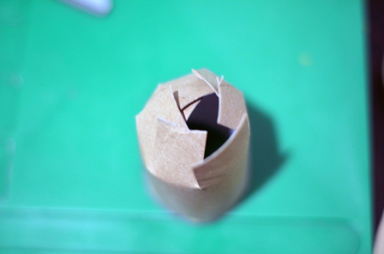 3.Загнуть как на картинке и склеить. Мы приклеили на донышко кружочек-чтобы устойчивее стояла кружка.