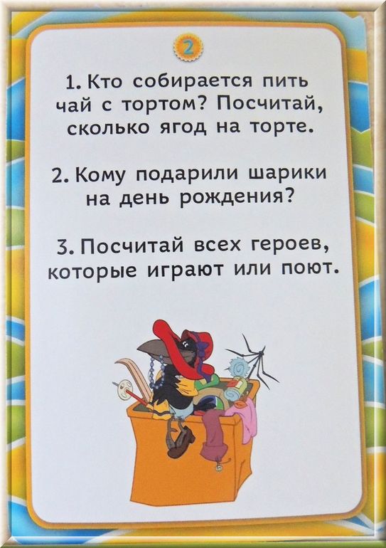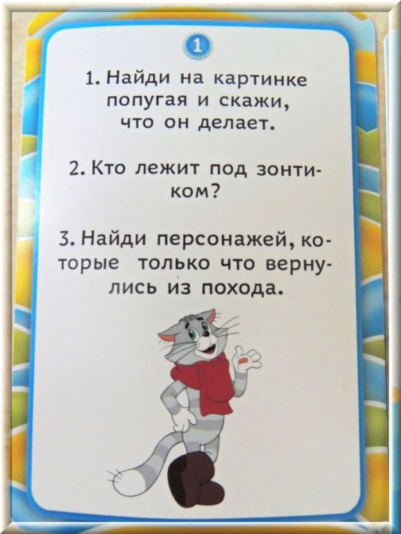 - на обороте каждой карточки из пазла по 3 задания - переворачиваешь, читаешь и выполняешь. Задания на поиск, счет, придумать что-нибудь, внимание, развитие речи.