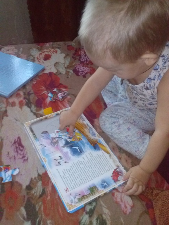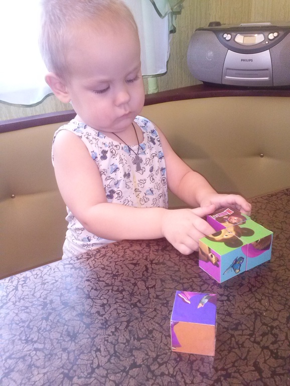 Мама с сыночком такие умнички! Танграм такой уже многоэлементный собирает. Возьму на заметку, так же как и кубики с "Машей", а то у нас только разноцветные и с буквами. А Иван уже сам пазлы собирает? Или пока только разбирает?