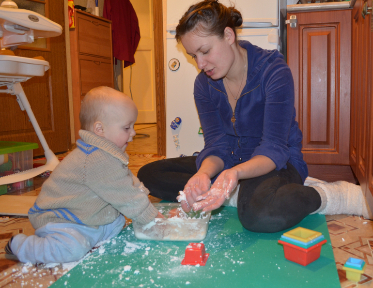 Развитие детей второго года жизниВ пятничный вечер мы засели у мини-песочницы с приятнейшей на ощупь массой.