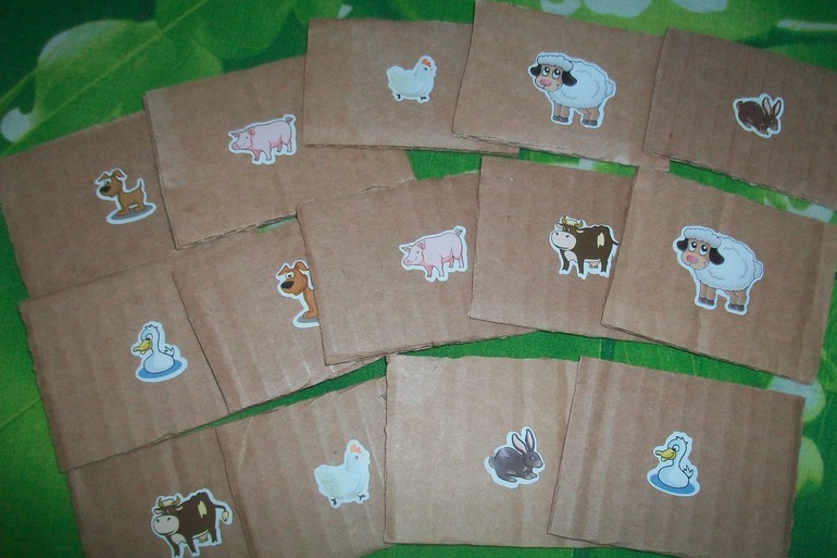 А еще я сделала "Мемори" из обычной картонки и наклеек с животными (идея взята с ББ):