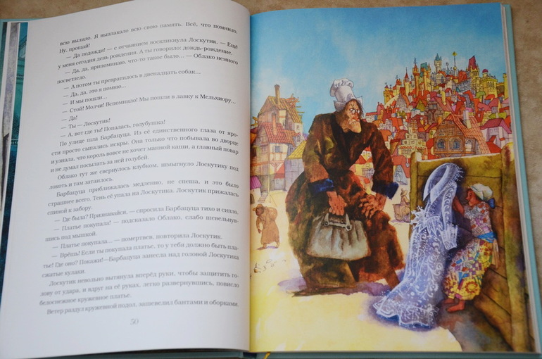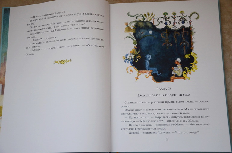И последняя книга, о которой хотела бы сегодня рассказать - одна из самых "длинных" в нашей библиотеке. Читали мы ее, наверно, неделю, но всю неделю Настя возвращалась к ней снова и снова. "Лоскутик и облако" - прекрасное издание "Нигмы" (формат 60Х90, бумага мелованная)