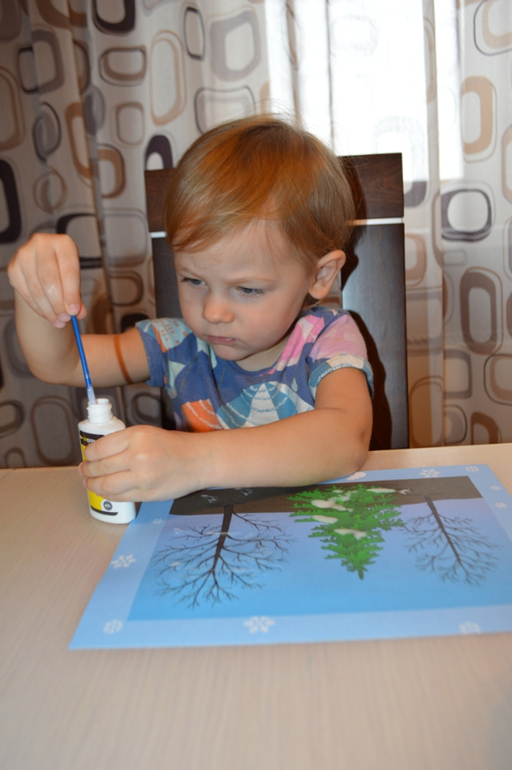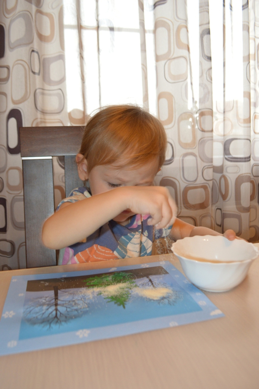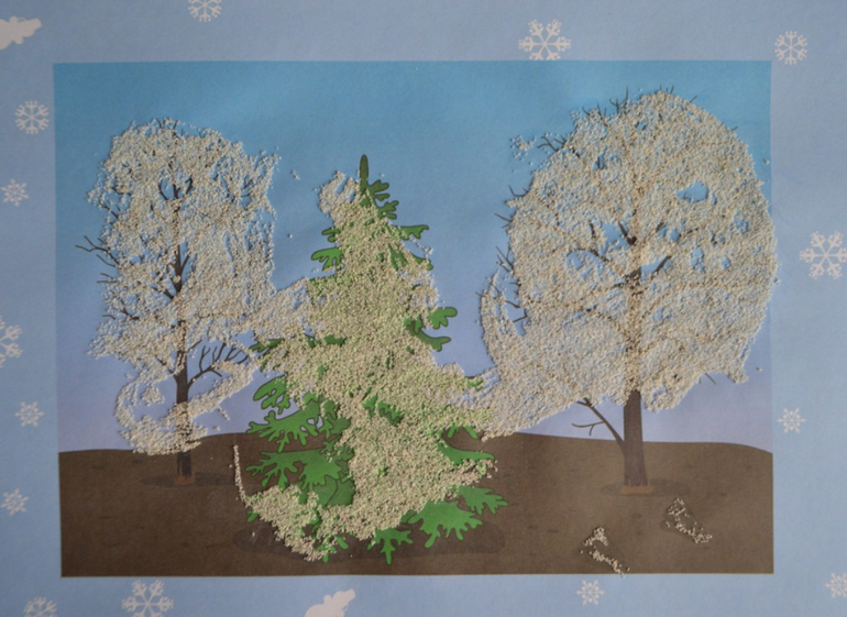 Сегодня это были деревья, посыпанные манкой. Солью не стали сыпать, а то ж Лера наестся соли)))