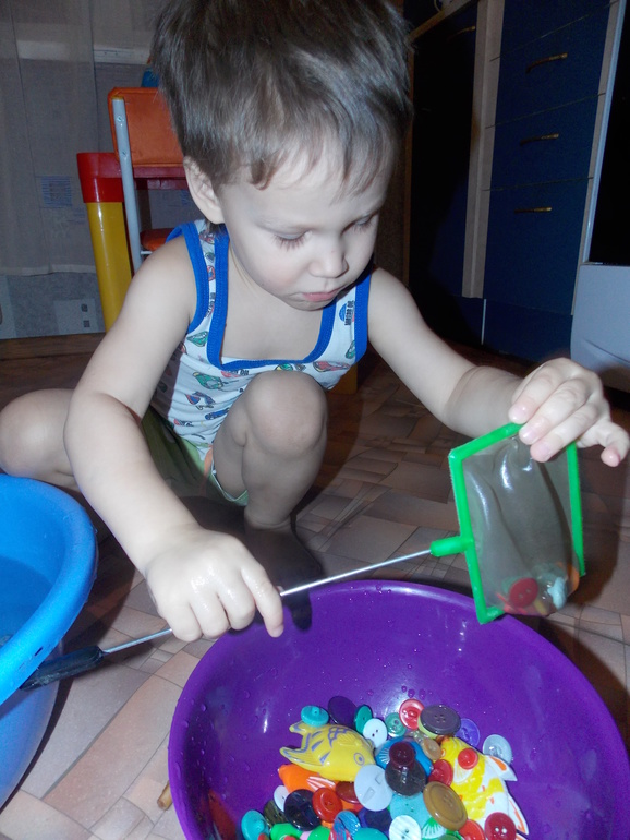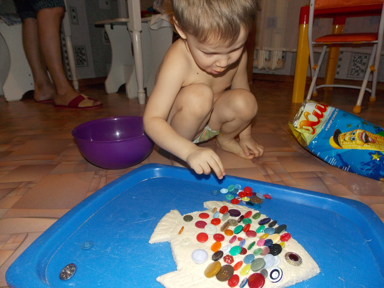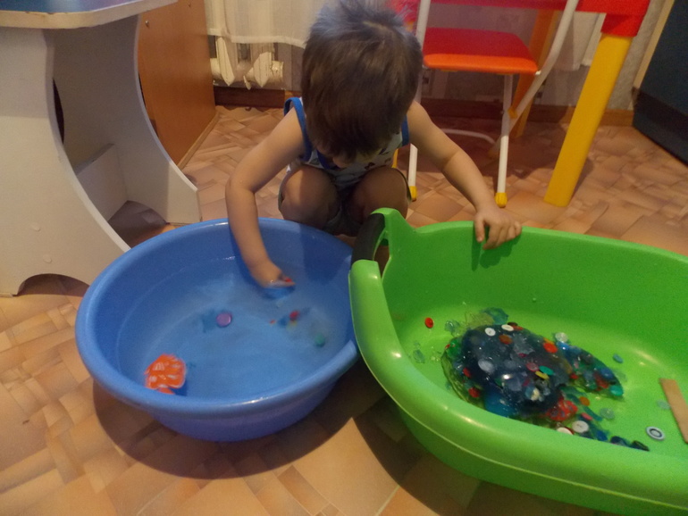 К сожалению, я не засекла времени))) но возились мы реально долго))) пуговиц-то там оказалось до фига, я как-то и не ожидала)))) а потом же их еще от желе отмыть надо))) но ребенок был доволен и счастлив.