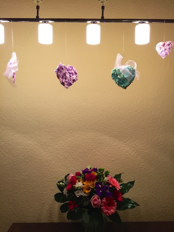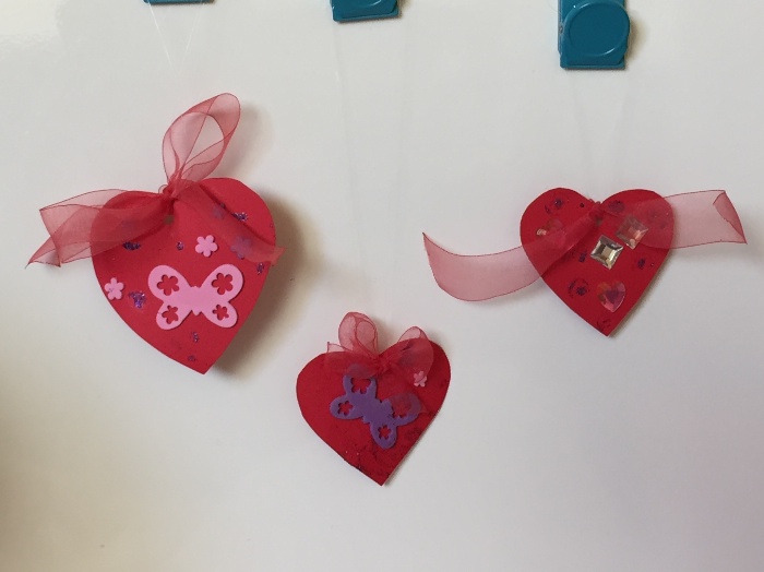 Творчество. Конечно, мы уселись делать валентинки и сердечки для украшения интерьера.