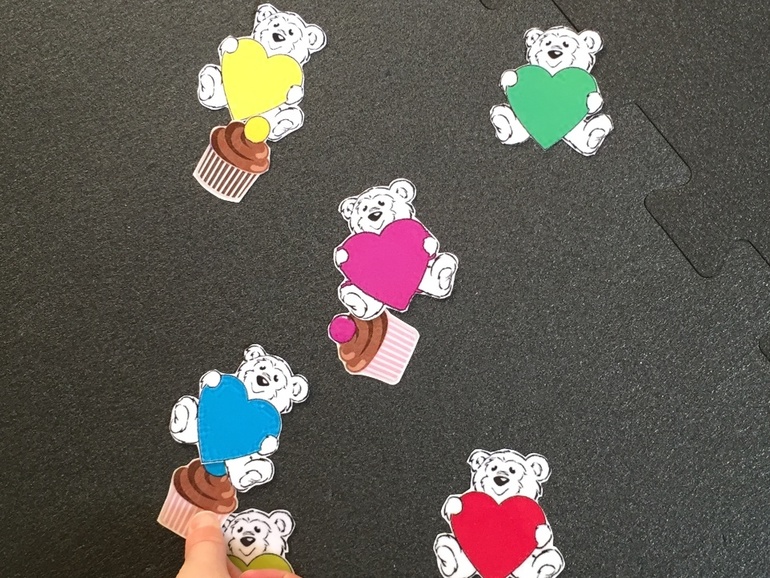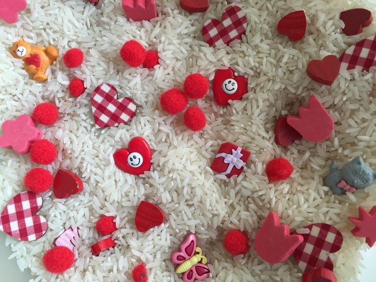 Самым удачным развелечением оказалась сенсорная коробочка. Играли долго и с удовольствием.Среди сердечек спрятались котенок, медвежонок, бабочка и божья коровка, их-то Настя и искала. Когда все нашлись, отправились на цветочную полянку праздновать. День святого Валентина, конечно. Приносили с собой подарки))