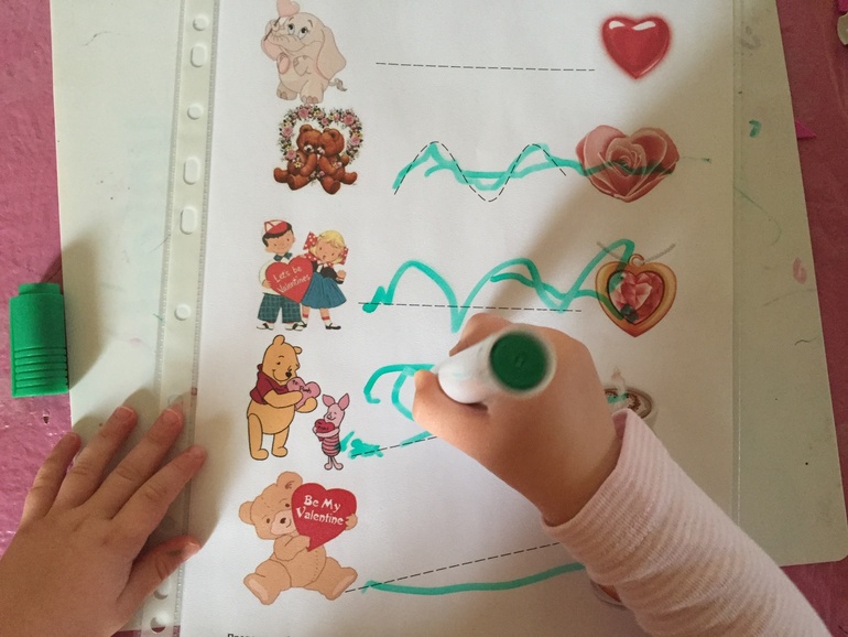 Поиграли и позанимались мы неплохо. Но для себя я сделала вывод, что эта тема для двухлетки не очень подходит. Многие задания Настя выполнила бы с большим энтузиазмом, если бы в них были не амуры-сердечки-букетики, а что-то более близкое по интересам.