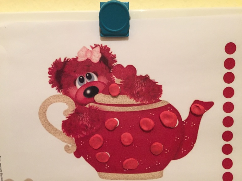 Еще на цветовосприятие было задание с сердечками. Кроме того, складывали разрезные картинки, раскладывали по размеру амурчиков и подбирали заплатки к картинкам. Заплатки, кстати, совсем не заинтересовали, Настя бросила, не доделав, что с ней редко случается.