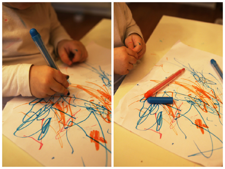 , что она почти правильно держит фломастер/карандаш/ручку.
