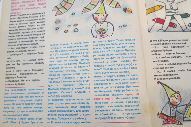 На этом всё. В следующей встрече - творческая глава 3, где мы на практике убедимся, что "один меньше, чем много, а много больше, чем один", а также введем понятия "вверху, внизу". (Лёне 2 года и 6 месяцев).