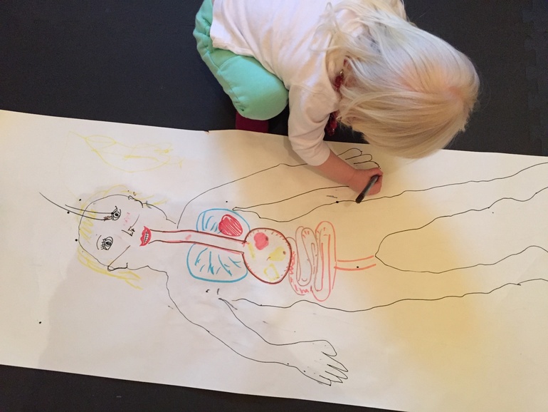 Названия всех основных частей тела Настена отлично знает и по-русски, и по-немецки. Поэтому я решила больше сосредоточится на внутренних органах и заняться творчеством.