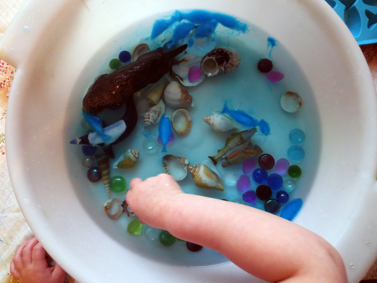 Любим мы животных моря и включили ледяные забавы: заморозила в воздушных шариках фигурки (косатка, кит, дельфин) и сделала цветных ледяных рыбок. Играли часа полтора, пока все полностью не растаяло. Восторг! На фото выше, косатка в ледяном шаре.