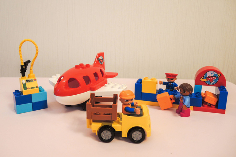 Набор Аэропорт небольшой, но очень функциональный - именно то, что нужно для малышей 1,5 - 5 лет. Если строго следовать инструкции, то можно добиться примерно таких результатов:
