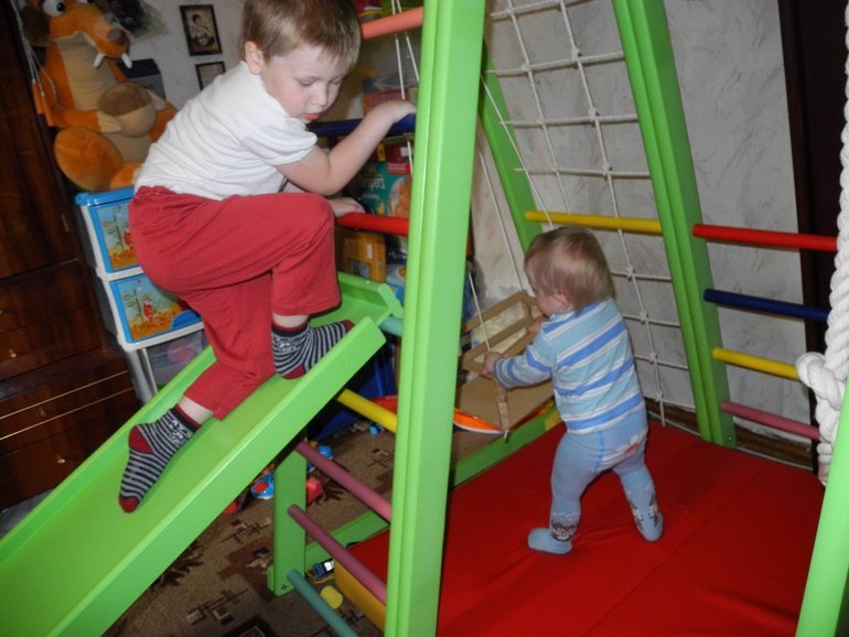 Этот спорткомплекс наша гордость, все в подъезде уже знают, что он у нас есть. И бабульки и дети и дворник. Старший всем все рассказывает. Даже собакам ))) Иногда накроешь их там простыней и тишина..., что то сидят мастерят. Еще обижаются, когда загляешь, потревожишь ))
