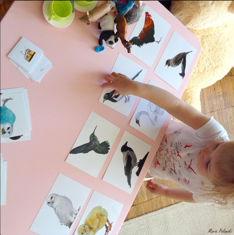 Еще один вариант: раскладываем карточки в ряд (рядами если их уже много), знакомимся, закрываем листом и перекладываем местами (сначала несколько, потом все больше и больше). Задача ребенка - навести первоначальный порядок.
