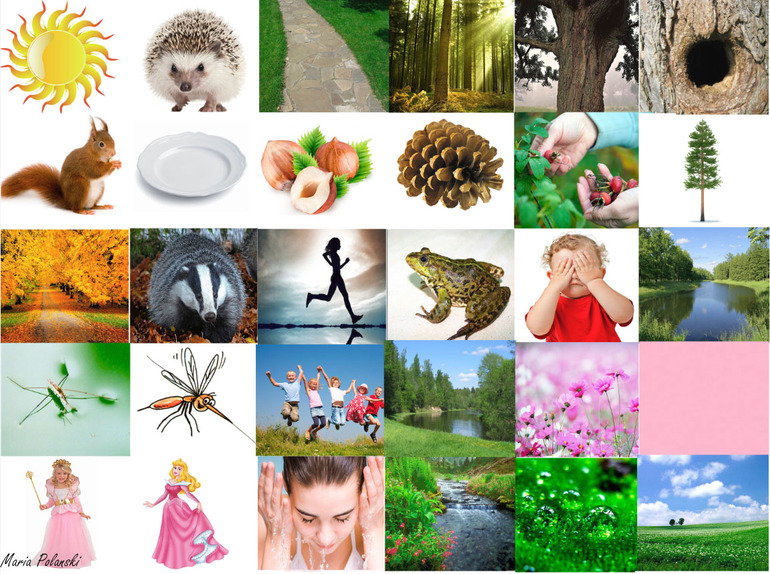Цепочка памяти это забавная абсурдная история. На мой взгляд это упражнение идеально подходят детям, которые уже говорят и которые понимают абсурдность истории. Если ребенок говорит, но абсурдность пока не понимает, то лучше будет рассказать ему более-менее нормальную историю (сказки, стихи и т.п.), сопровождая ее выкладыванием соответствующих картинок. Единственное требование - история должна быть услышана впервые. После того как карточки разложены, на них налетает ветерок и ребенку приходится помогать панде (жирафу/кукле/машинке) собрать их в том же порядке, вспоминая рассказанную историю.![]()