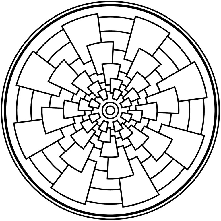 Мандала. В этом варианте ребенку предлагается не просто тыкнуть пальчиком в то, что он уже видел, а воспроизвести увиденное. Для детей по-младше подойдет вариант с трафаретами из цветной бумаги, которые надо наложить друг на друга для получения того же узора (наложить круг на квадрат и т.п. простые действия). Или же можно дать цветные карандаши/фломастеры и задачей ребенка будет просто черкнуть нужным цветом в нужном секторе черно-белой мандалы. Но тут все осложняется развитием моторики и точностью нанесения штриха, так что либо ребенок должен быть чуть старше, чем в варианте с цветными трафаретами, либо печатайте картинки покрупнее (на а5 или а4), чтобы точно не промахнулся))