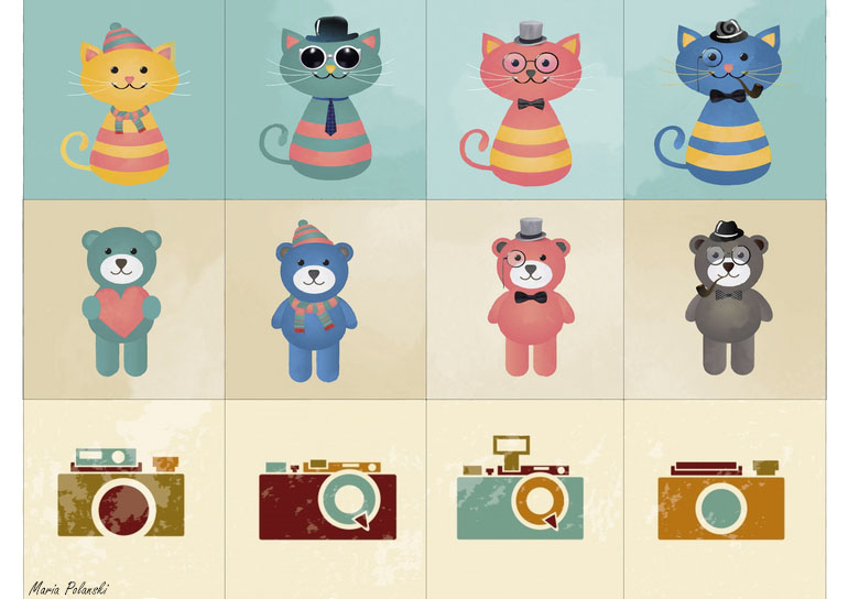 Вариант для детей по-старше: на разлинованном поле (как для сетки памяти) раскладываем карточки, знакомимся, потом закрываем листом бумаги и тихонько убираем что-то или добавляем. Спрашиваем что изменилось, если чего-то не хватает, то чего именно.