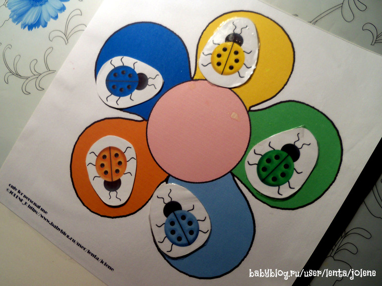Потом Мир углядел божьих коровок их этого комплекта. Задание ему уже очень легкое, но сын до сих пор его любит.